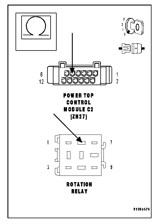 YES: Replace the Right Rotation Relay. Perform POWER TOP CONTROL MODULE VERIFICATION TEST. Power Top Verification Test