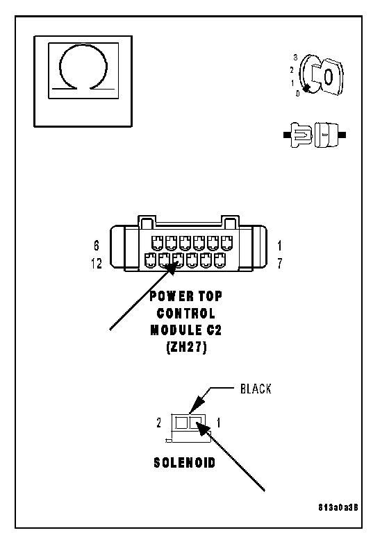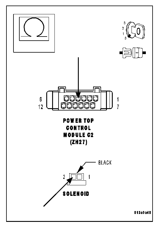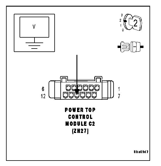 Measure the voltage of the Hydraulic Solenoid S1 Supply Voltage circuit at the Power Top Control Module C2 harness connector.