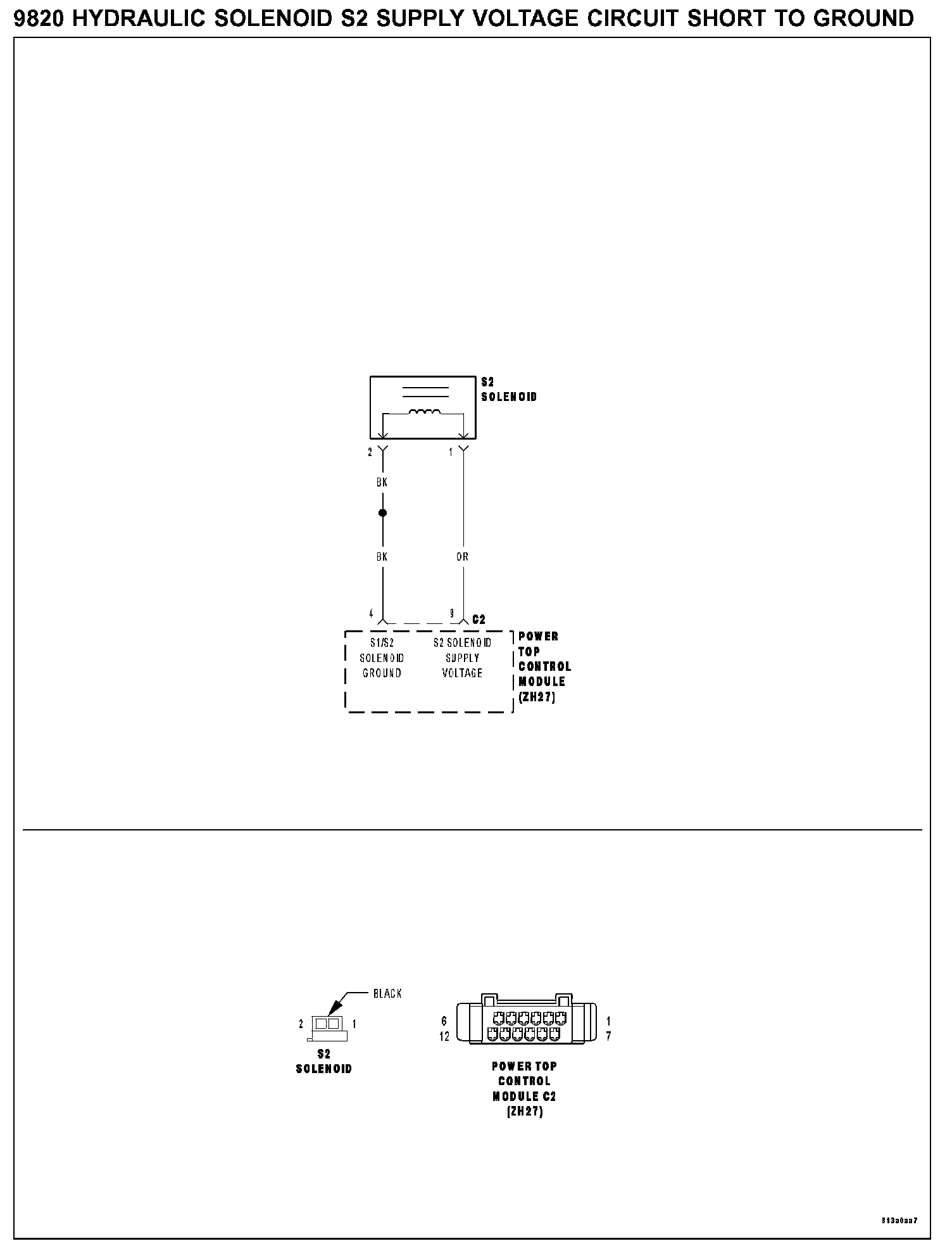 NO: Repair the Hydraulic Solenoid S2 Supply Voltage circuit for a short to ground. Perform POWER TOP CONTROL MODULE VERIFICATION TEST. Power Top Verification Test