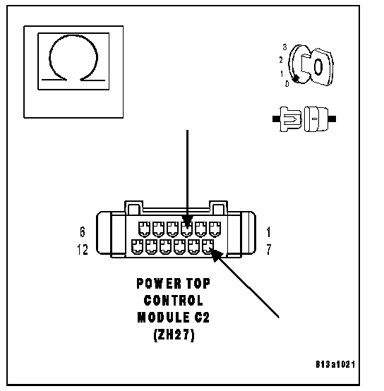 Disconnect the Power Top Control Module C2 harness connector.