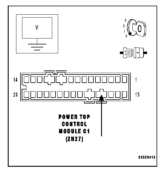 Disconnect the Power Top Control Module C1 harness connector.