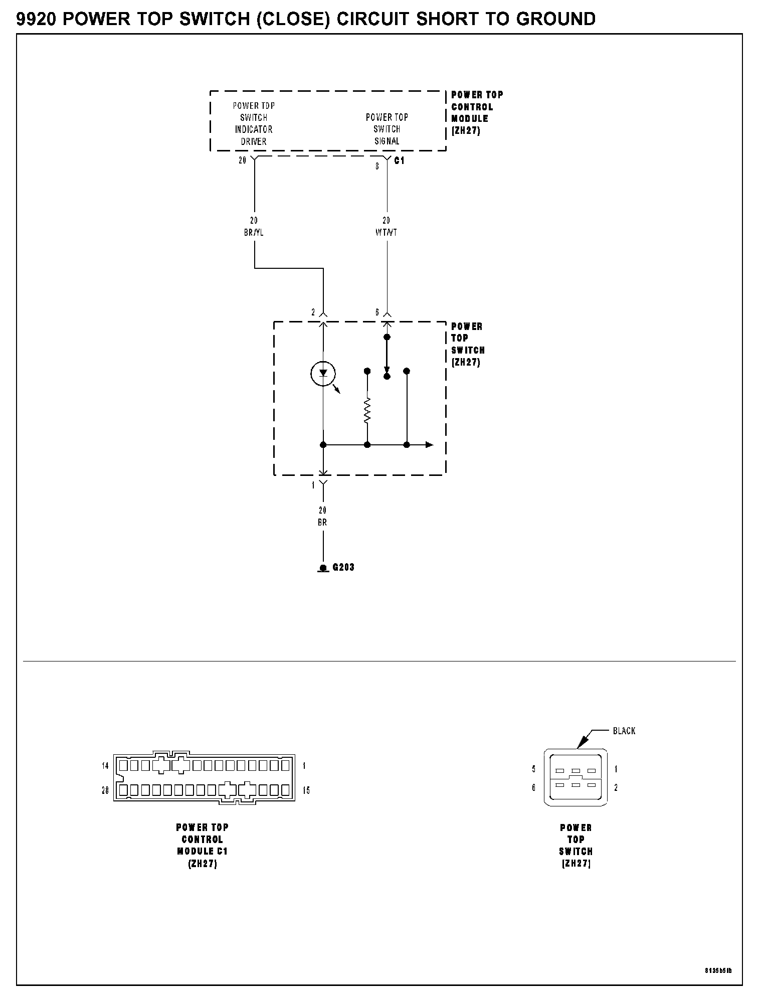 9920 POWER TOP SWITCH (CLOSE) CIRCUIT SHORT TO GROUND9920 Power Top Switch (Close) Circuit Short To Ground: