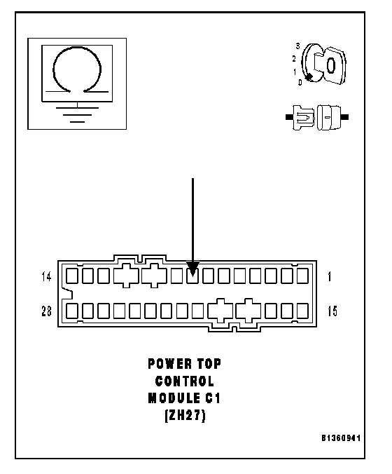 YES: Repair the Power Top Switch (Close) circuit for a short to ground. Perform POWER TOP CONTROL MODULE VERIFICATION TEST. Power Top Verification Test