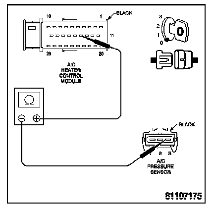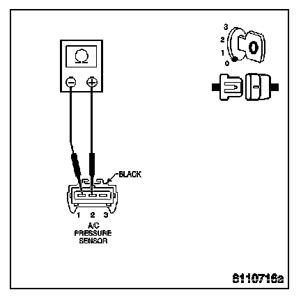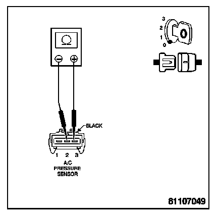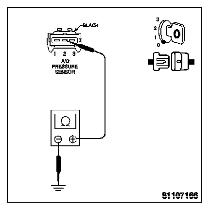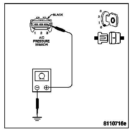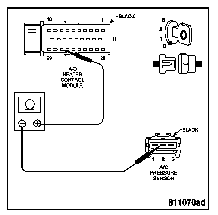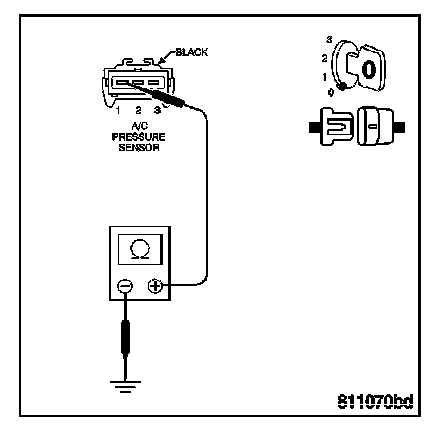 Measure the resistance between ground and the A/C Pressure Sensor Ground circuit at the A/C Pressure Sensor harness connector.