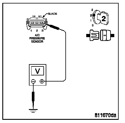 Measure the voltage of the 5-Volt Supply circuit at the A/C Pressure Sensor harness connector.
