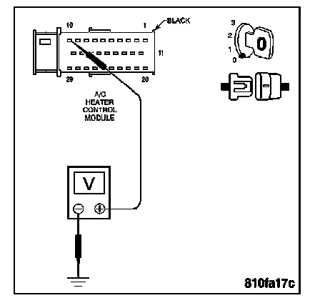 With the ignition off. Disconnect the A/C Heater Control Module harness connector.