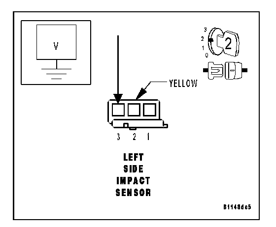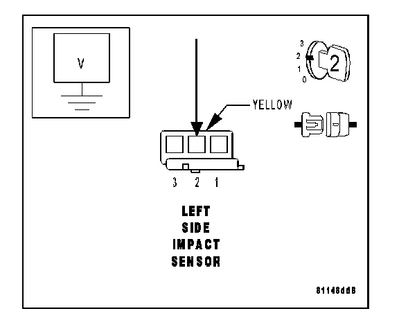 1. MEASURE LEFT SIDE IMPACT SENSOR FUSED IGNITION SWITCH OUTPUT VOLTAGE