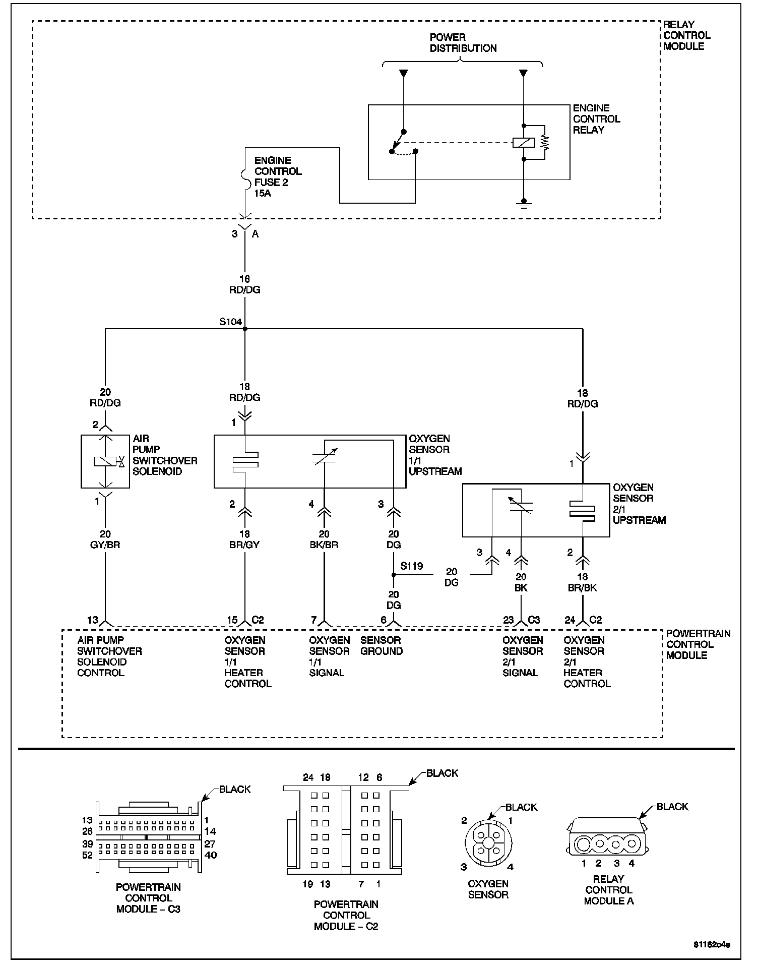 Turn the ignition on. With the DRBIII, read PCM DTCs. Using the wiring diagram/schematic as a guide, inspect the wiring and connectors. Repair as necessary.