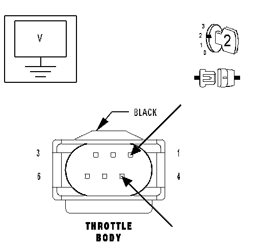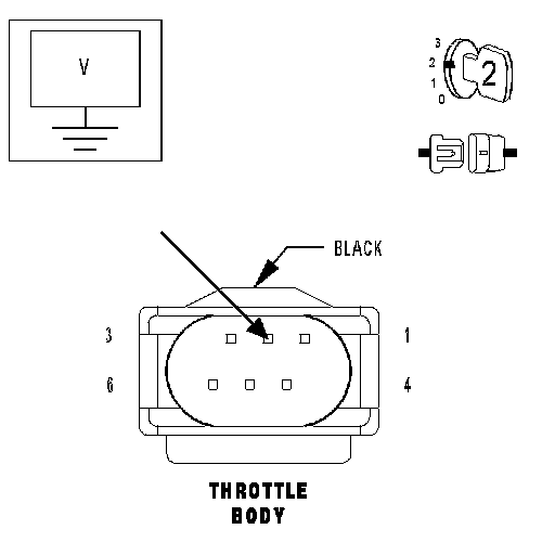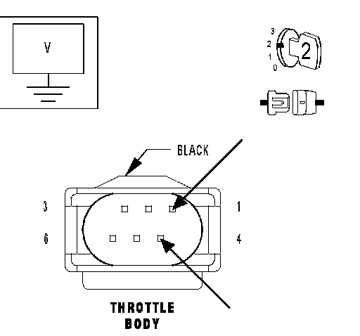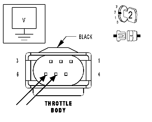 Turn the ignition on. Measure the voltage of the 5-Volt Supply circuit at the Throttle Body harness connector.