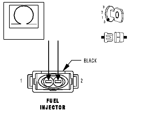 Note: The fuel injectors are polarity sensitive. If a reading is not obtained with the meter leads connected one way, reverse the test leads and take another reading.