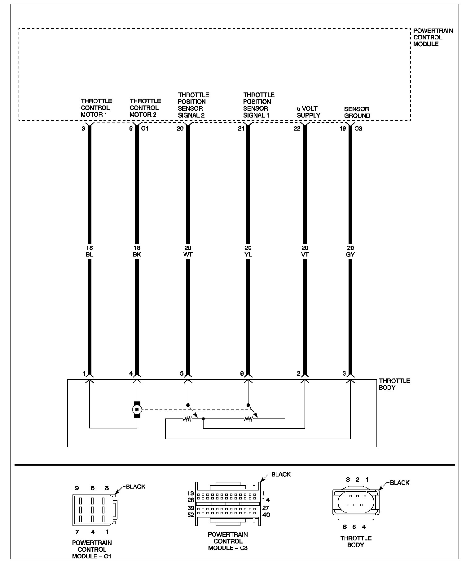 Note: The PCM tests the Throttle Body Motor by opening and closing the Throttle Plate before starting the engine. If the Throttle plate does not return to the closed position during this test, this DTC will set.