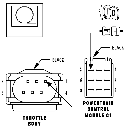 With the ignition off. Disconnect the PCM C1 harness connector. Disconnect the Throttle Body harness connector.