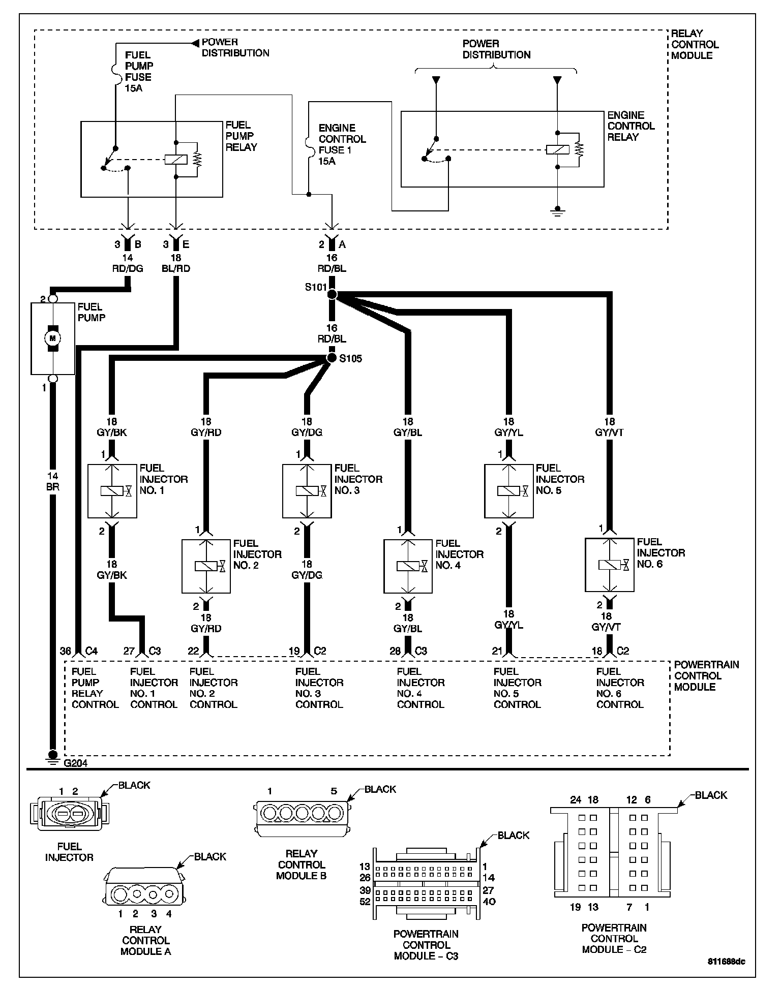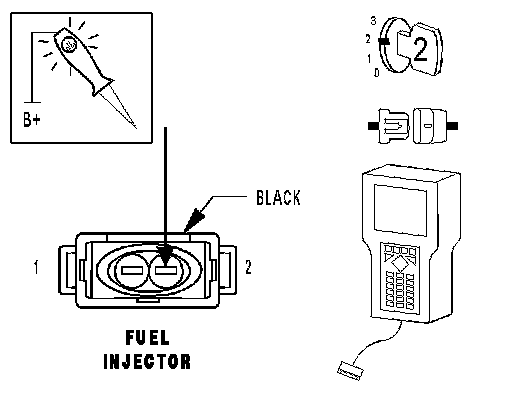 Using a 12-volt test light connected to 12-volts, probe the Fuel Injector Control circuit. With the DRBIII, actuate the Fuel Injector Kill.