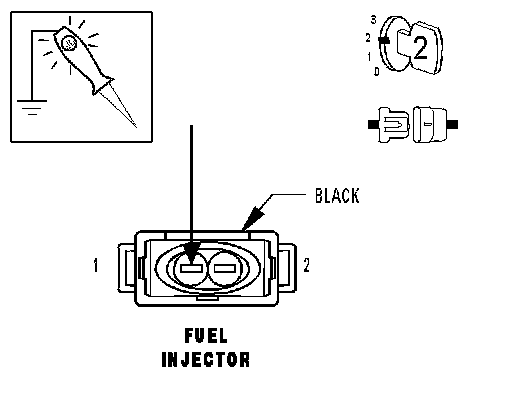 Turn the ignition on. Using a 12-volt test light connected to ground, probe the Engine Control Relay Output circuit at the Fuel Injector harness connector.