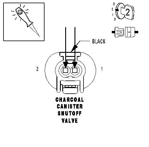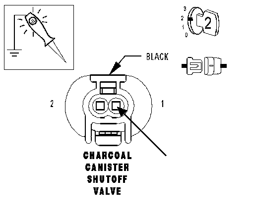 Using a 12-volt test light, jumper across the Charcoal Canister Shutoff Valve harness connector.