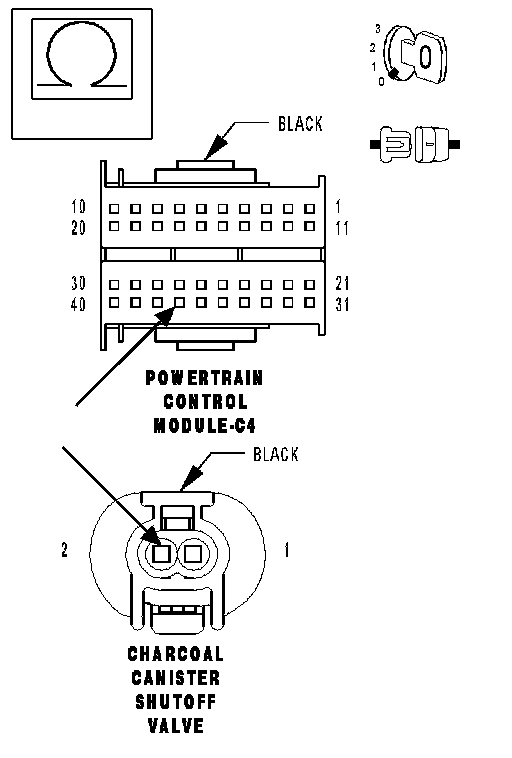 Connect a 12-volt test light between ground and the Fused Engine Control Relay Output circuit at the Charcoal Canister Shutoff Valve harness connector.