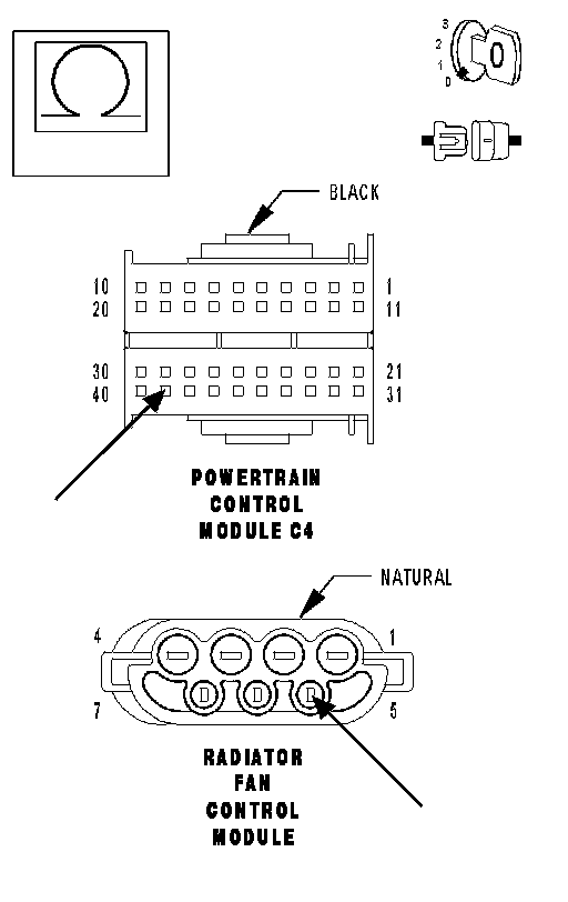 Reconnect the Radiator Fan Control Module harness connector. Disconnect the PCM C4 harness connector.