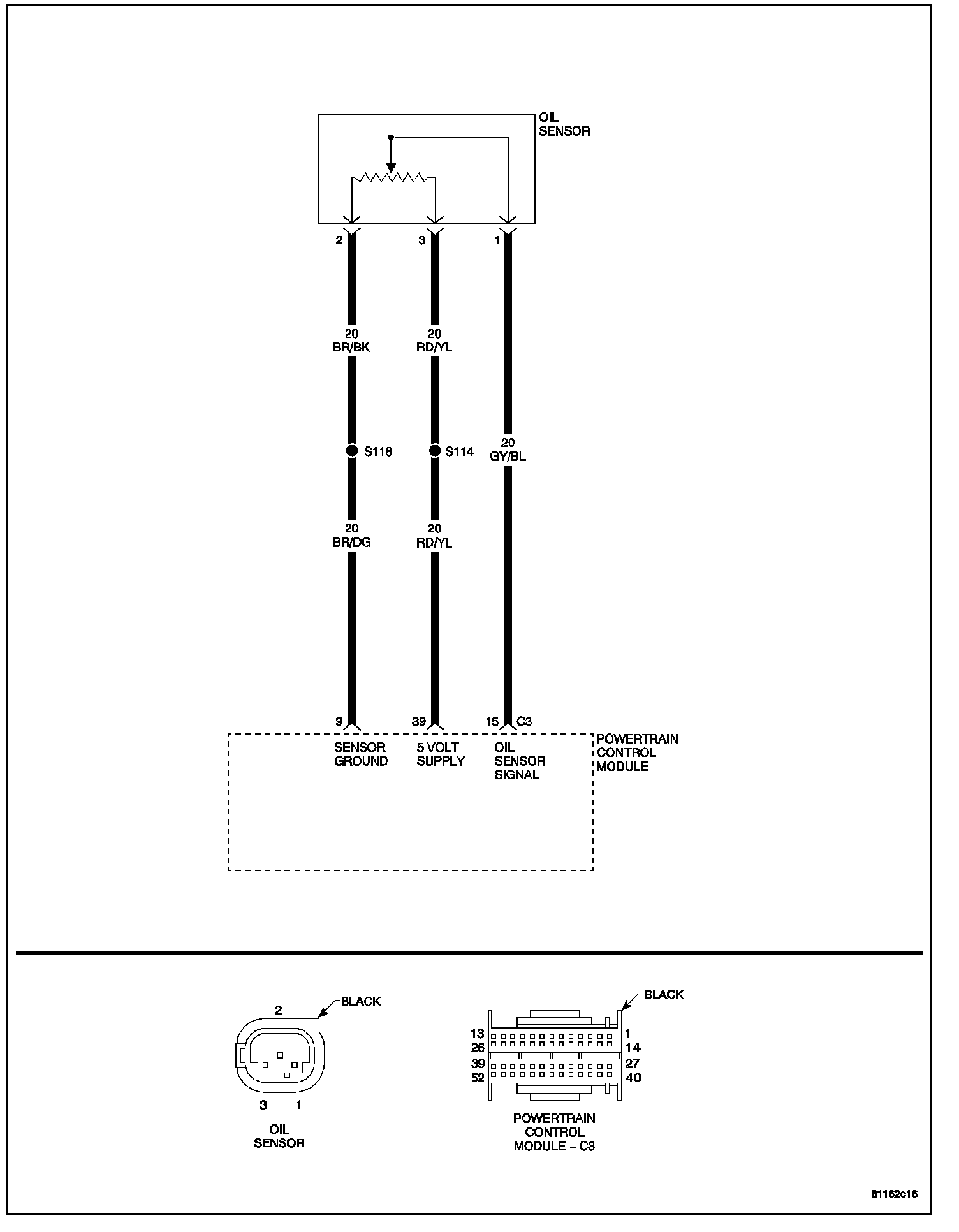 16. OIL SENSOR SIGNAL CIRCUIT SHORT TO VOLTAGE
