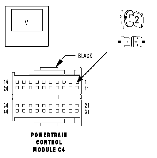 With the ignition on. Measure the voltage of the CAN C BUS (-) circuit at the PCM C4 harness connector.