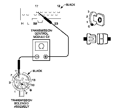 Measure the resistance of the TCC Solenoid Control circuit from the TCM C2 harness connector to the Transmission Solenoid Assembly harness connector.