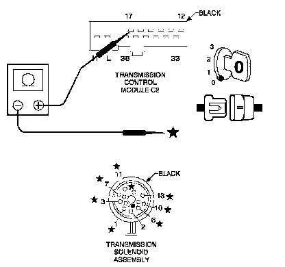 Measure the resistance from the TCC Solenoid Control circuit to all other circuits at the Transmission Solenoid Assembly harness connector.