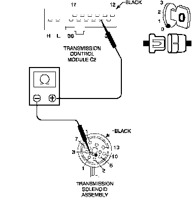 Measure the resistance of the Sensor Ground circuit from the TCM C2 harness connector to the Transmission Solenoid Assembly harness connector.