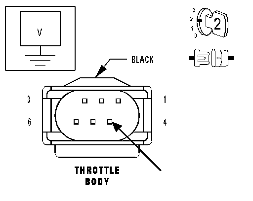 Turn the ignition on. Measure the voltage of the Throttle Control Motor 2 circuit at the Throttle Body harness connector.