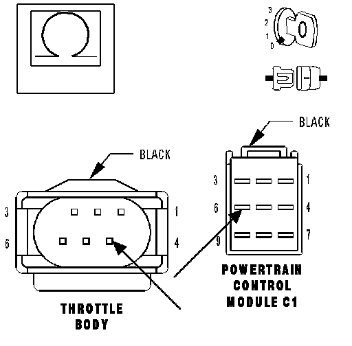 With the ignition off. Measure the resistance between ground and the Throttle Control Motor 1 circuit at the PCM C1 harness connector.