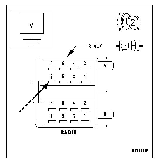 2. MEASURE RADIO FUSED B(+) CIRCUIT VOLTAGE