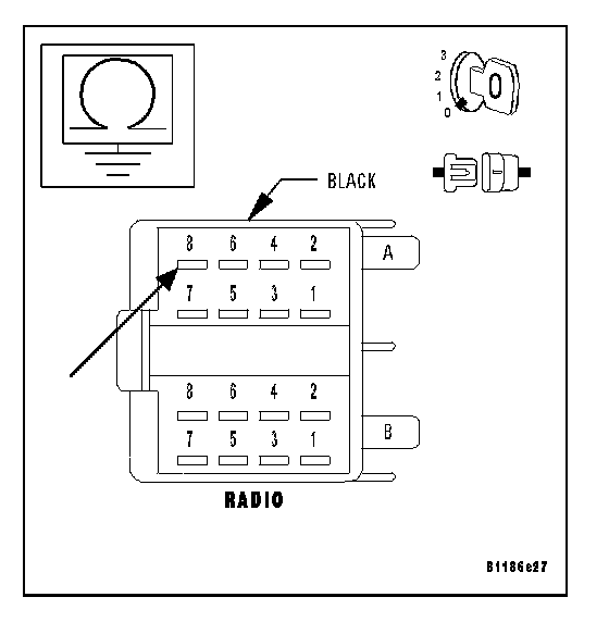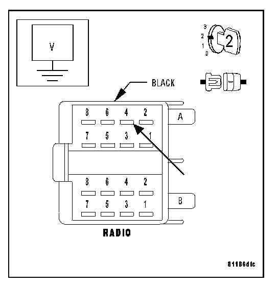 Measure the voltage of the Fused B(+) circuit at the Radio harness connector cavity 4 (connector A).