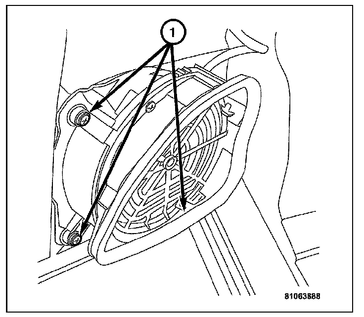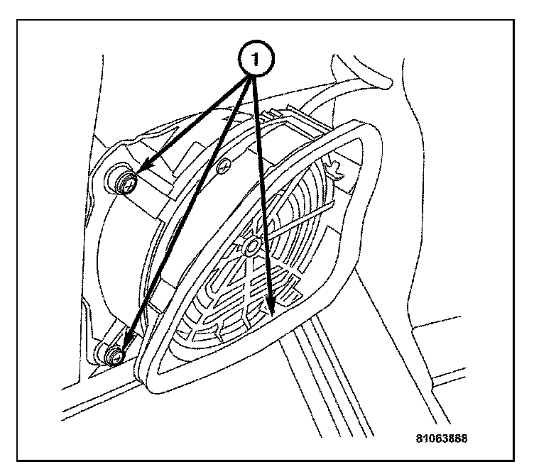 6. Install the door speaker by installing the screws (1) attaching it to the door.