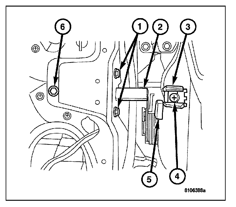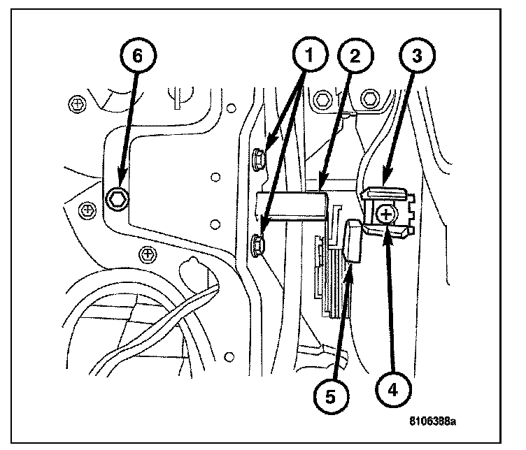 5. Remove the torx screw (4) and then remove the retaining plate (3).