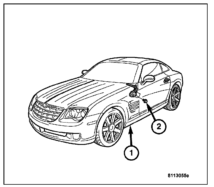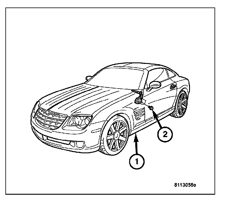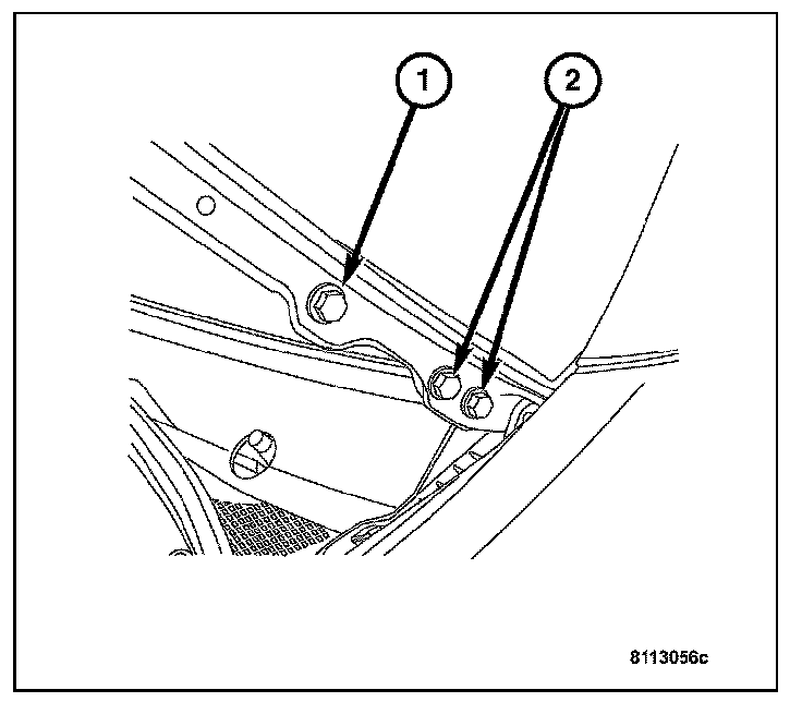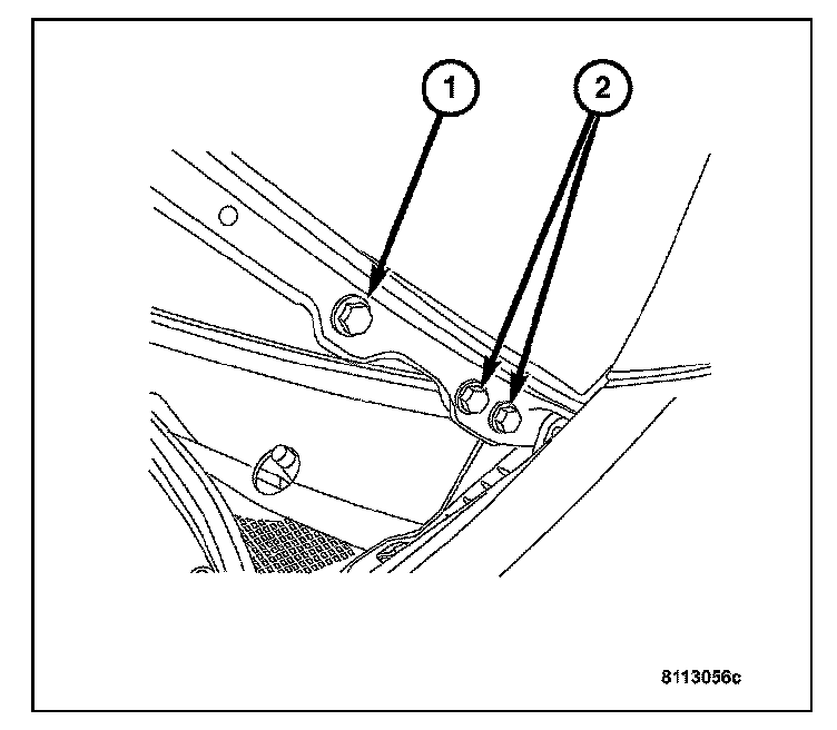 3. Install the hood by installing the lower bolts (2), then installing the upper bolts (1). Tighten to 10 N.m (88 in.lbs.).