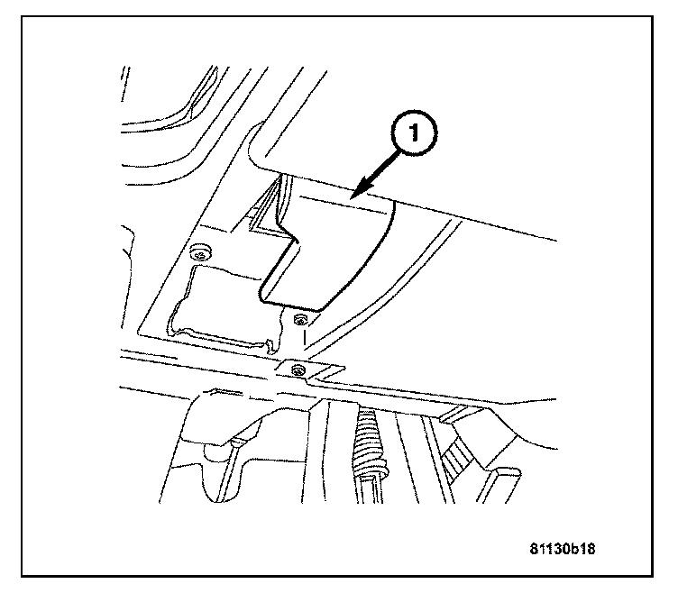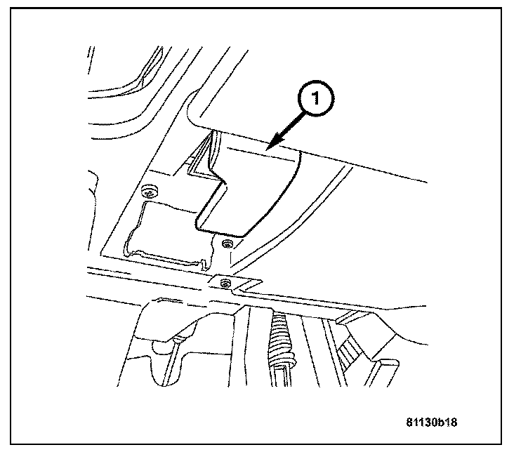 1. Install the hood latch release cable (1) between the headlamp and the upper frame cross member.