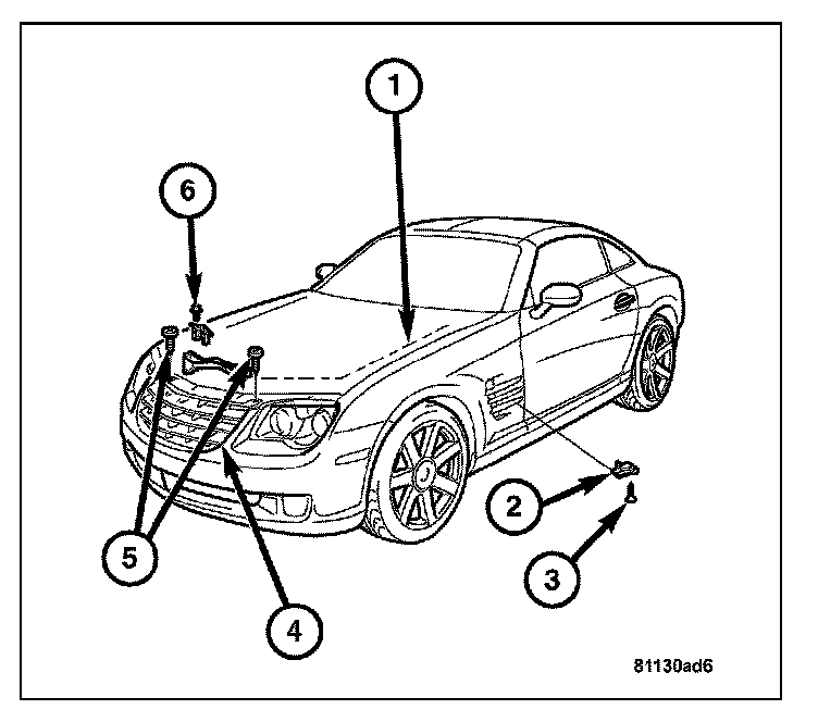 NOTE: Insure that hood latch release cable grommet is properly seated in the bulkhead.