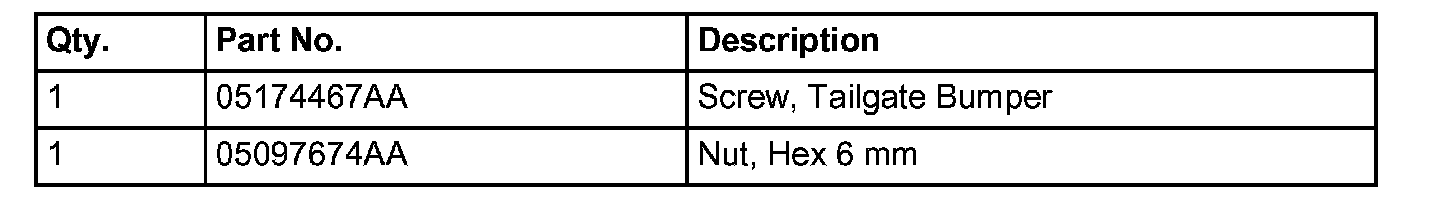 3. Using the 05174467AA screw and the 05097674AA nut, fasten the bumper to the liftgate.