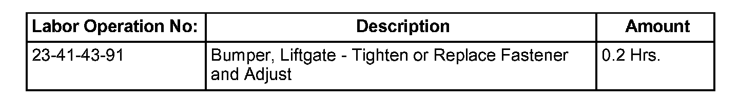 4. Position and adjust the liftgate bumper. Refer to the service information available in TechCONNECT. Reference: Service Info, Group 23 - Body/Decklid/Hatch/Liftgate/Tailgate - Adjustments.