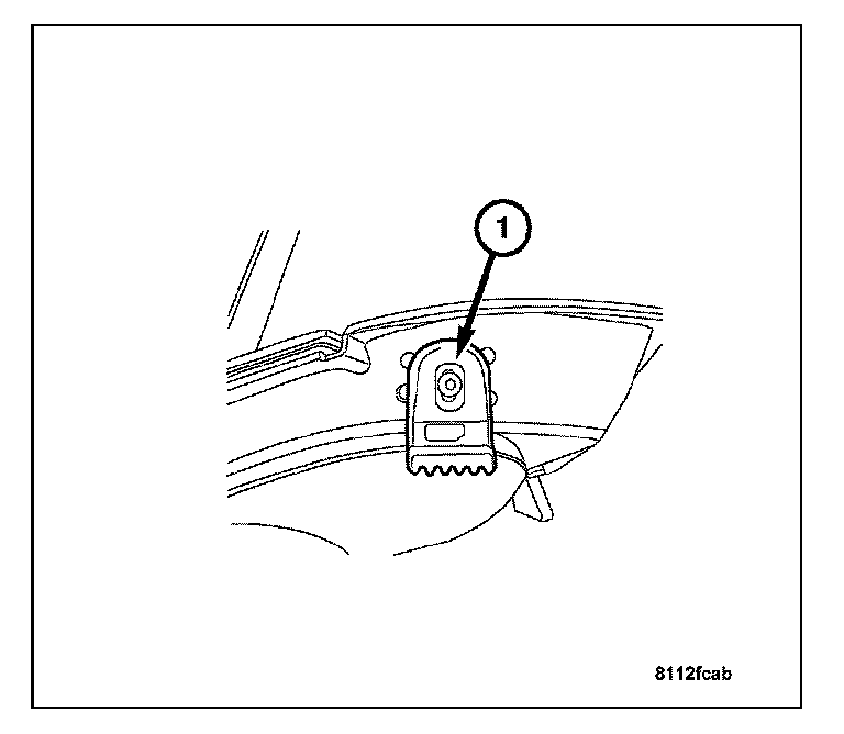 2. Remove the bolt (1) attaching the bumper to the liftgate.