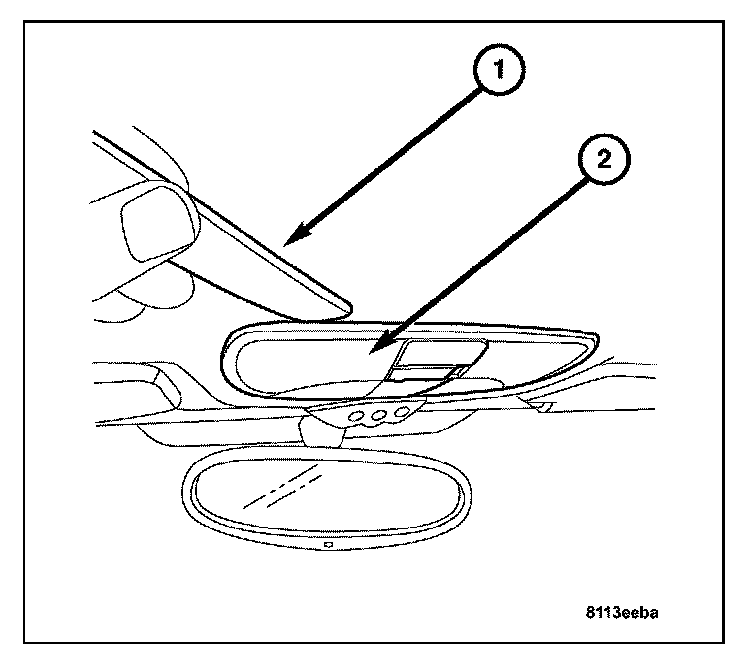 1. Remove the dome lamp assembly (2) by gently prying off the lens using a trim stick (1) or equivalent.