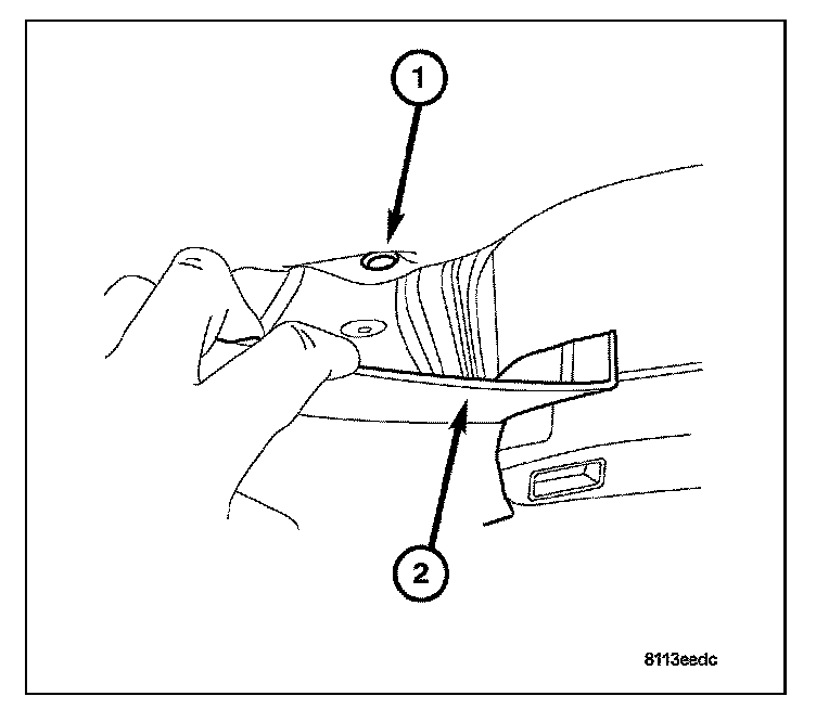 4. Connect the rear interior trim panel retaining clips (1) near headliner.