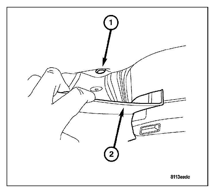 8. Disengage rear interior trim panel (2) retaining clips near headliner.
