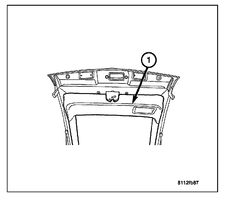 1. Push on the lower liftgate trim panel (1) to attach the retainers to the liftgate.