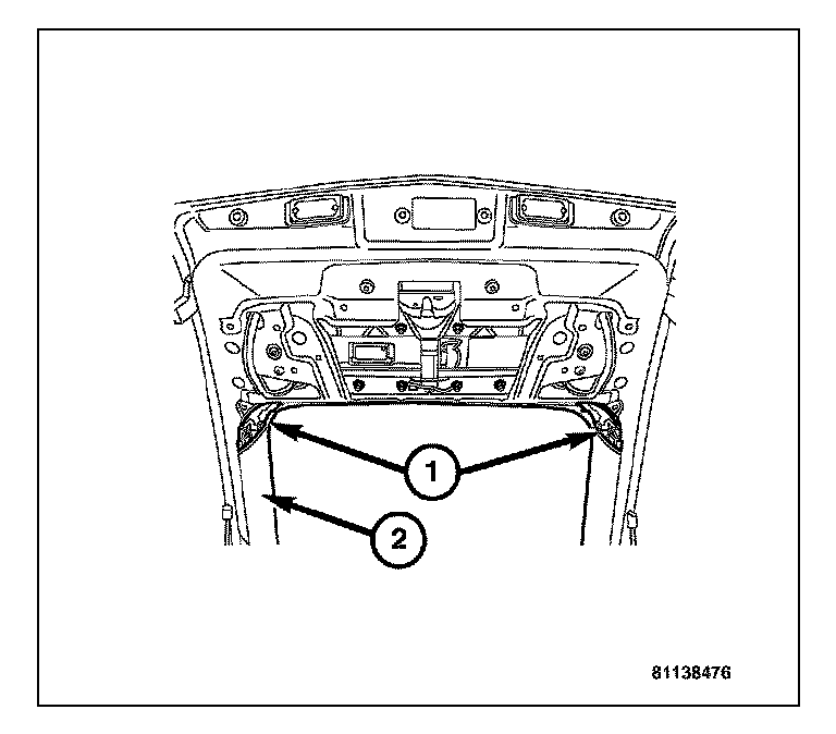 3. Pull down on the upper liftgate trim panel (2) to release it from the liftgate.