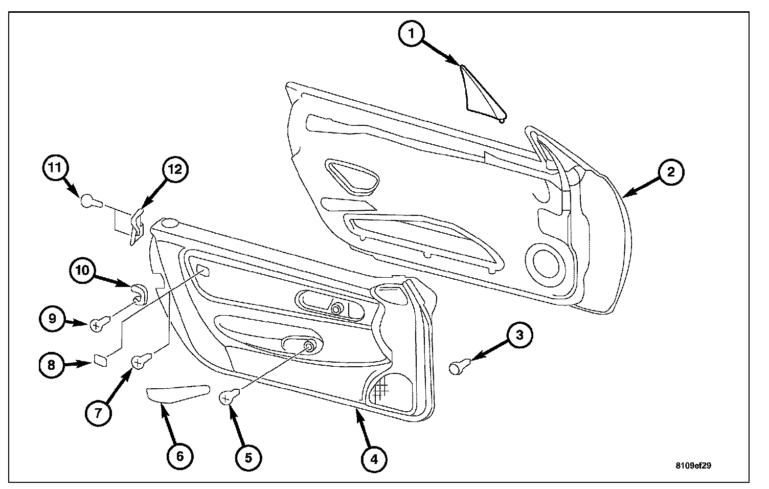 11. Remove the door trim panel (4) and place in a clean dry place.