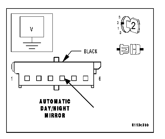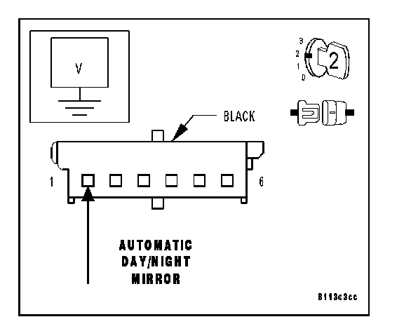1. MEASURE AUTOMATIC DAY/NIGHT MIRROR FUSED B(+) CIRCUIT VOLTAGE