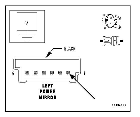 1. MEASURE LEFT MIRROR HEATER ELEMENT FUSED HEATED MIRROR SUPPLY CIRCUIT VOLTAGE
