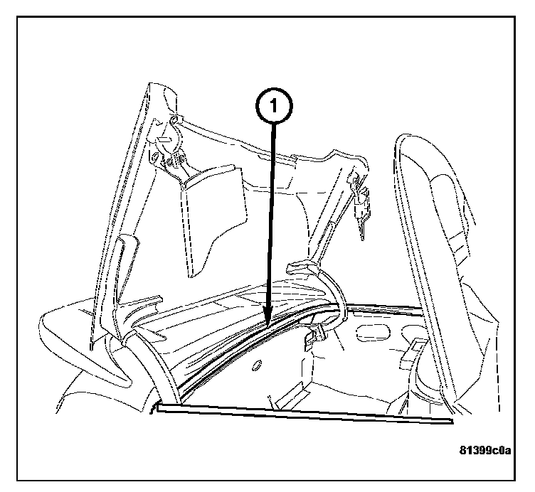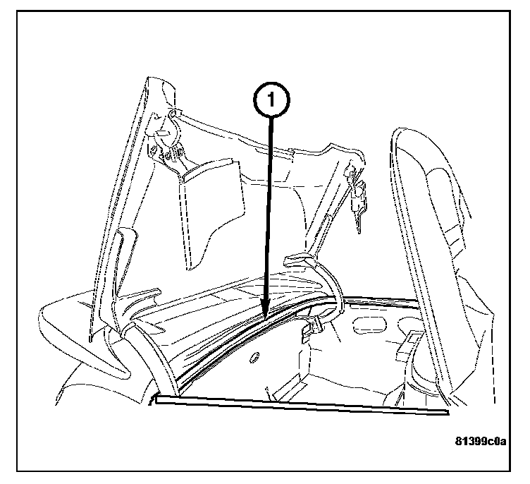 3. Grasp the edge of the weatherstrip (1) and pull outward to remove the seal from the tonneau opening.