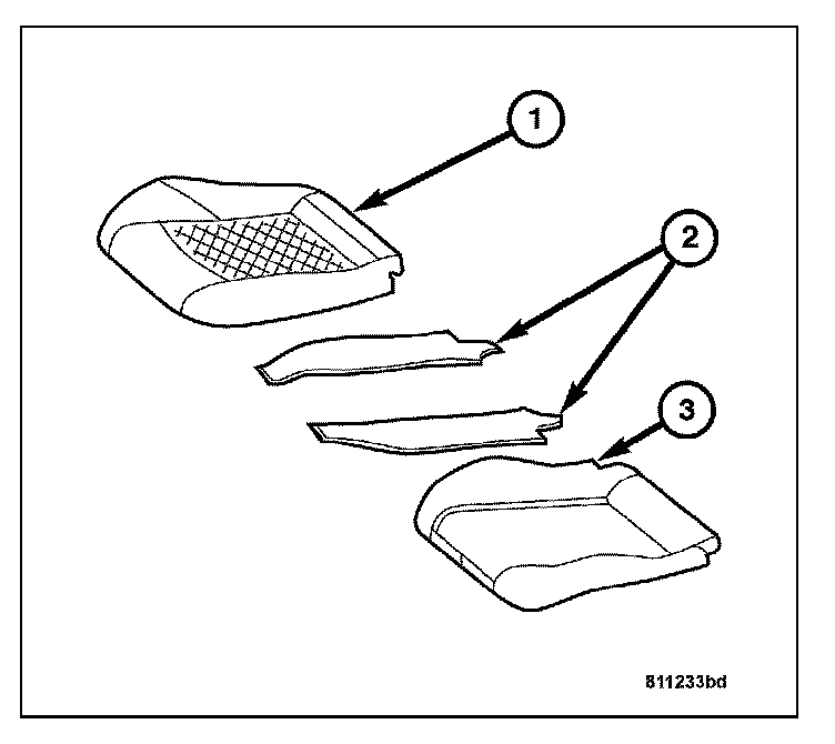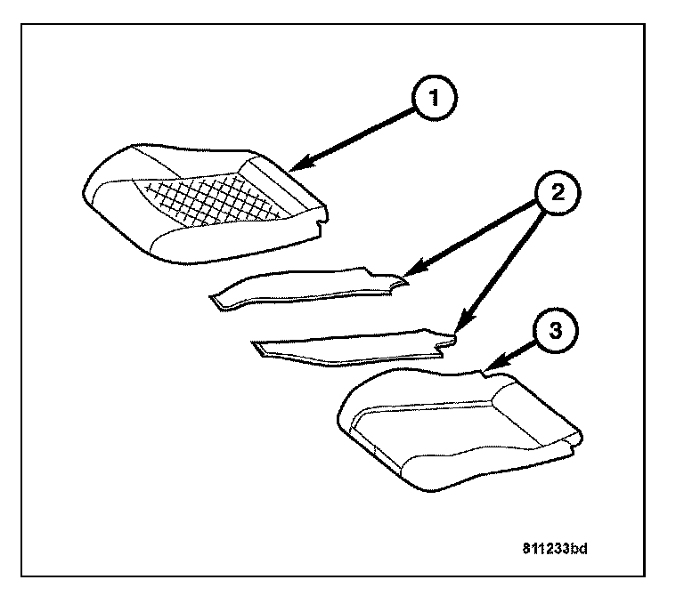 The heated seat cushion element (2) is part of the seat cushion assembly (3). To access the element, the seat must be removed and the seat cover (1) disassembled.