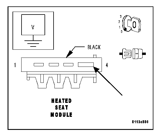2. MEASURE HEATED SEAT MODULE FUSED IGNITION SWITCH OUTPUT CIRCUIT VOLTAGE