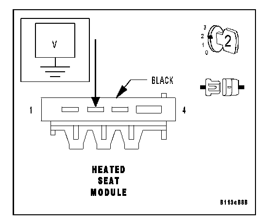 1. MEASURE HEATED SEAT MODULE FUSED B(+) CIRCUIT VOLTAGE